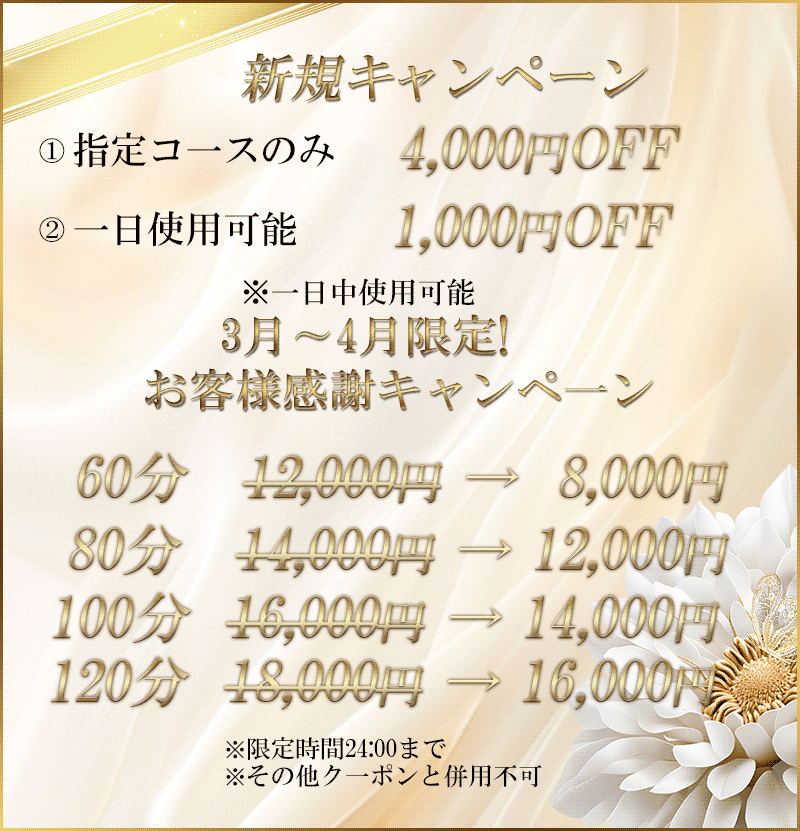 毎日頑張っている紳士の皆様、日頃の疲れになっている身体と心を、幸福なる雰囲気包まれた癒しの場所、落ちついた部屋の個室で可愛いセラピスト達がお待ちしております。当店のセラピストは若く容姿端麗にこだわりました、まるで蜜のように甘く幸せな空間でゆったりとした時間をお過ごし下さい。